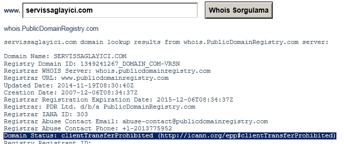 11.ClientTransferProhibited :Domain Kilitli Kullanıcının domaini transfer etme hakkı yok,